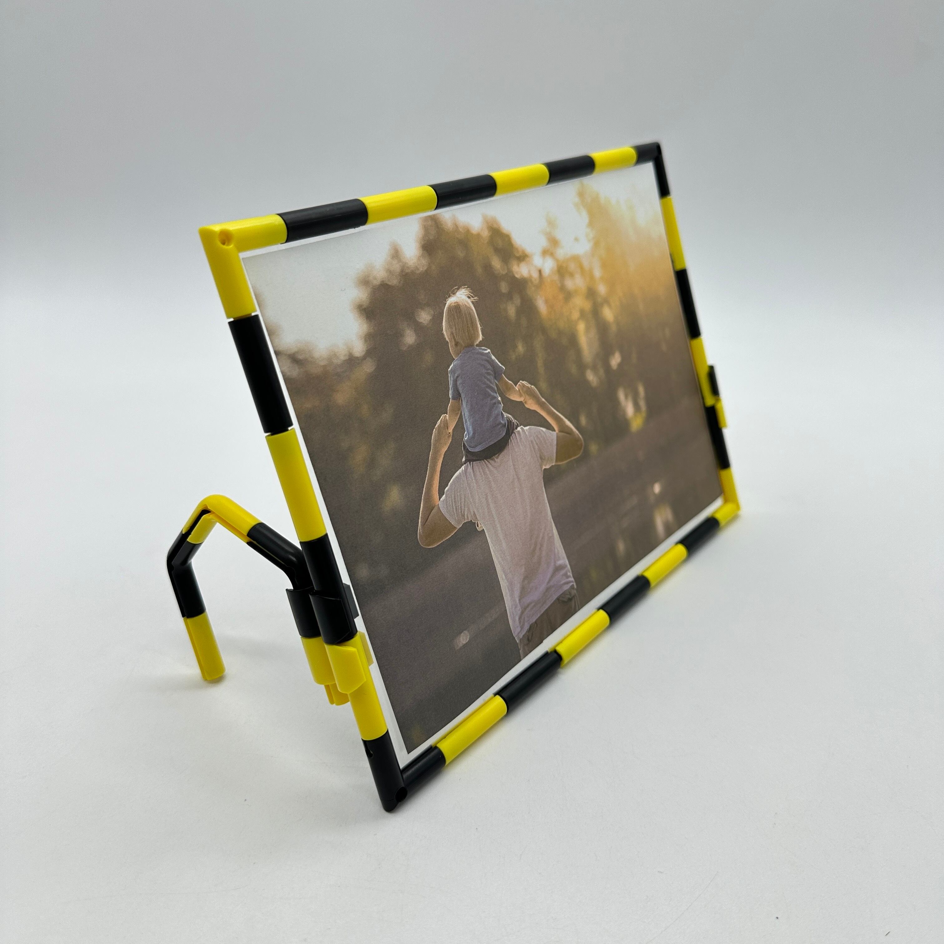2色のブロックを自分で組み立ててつくる、虎柄風のフォトフレームです。