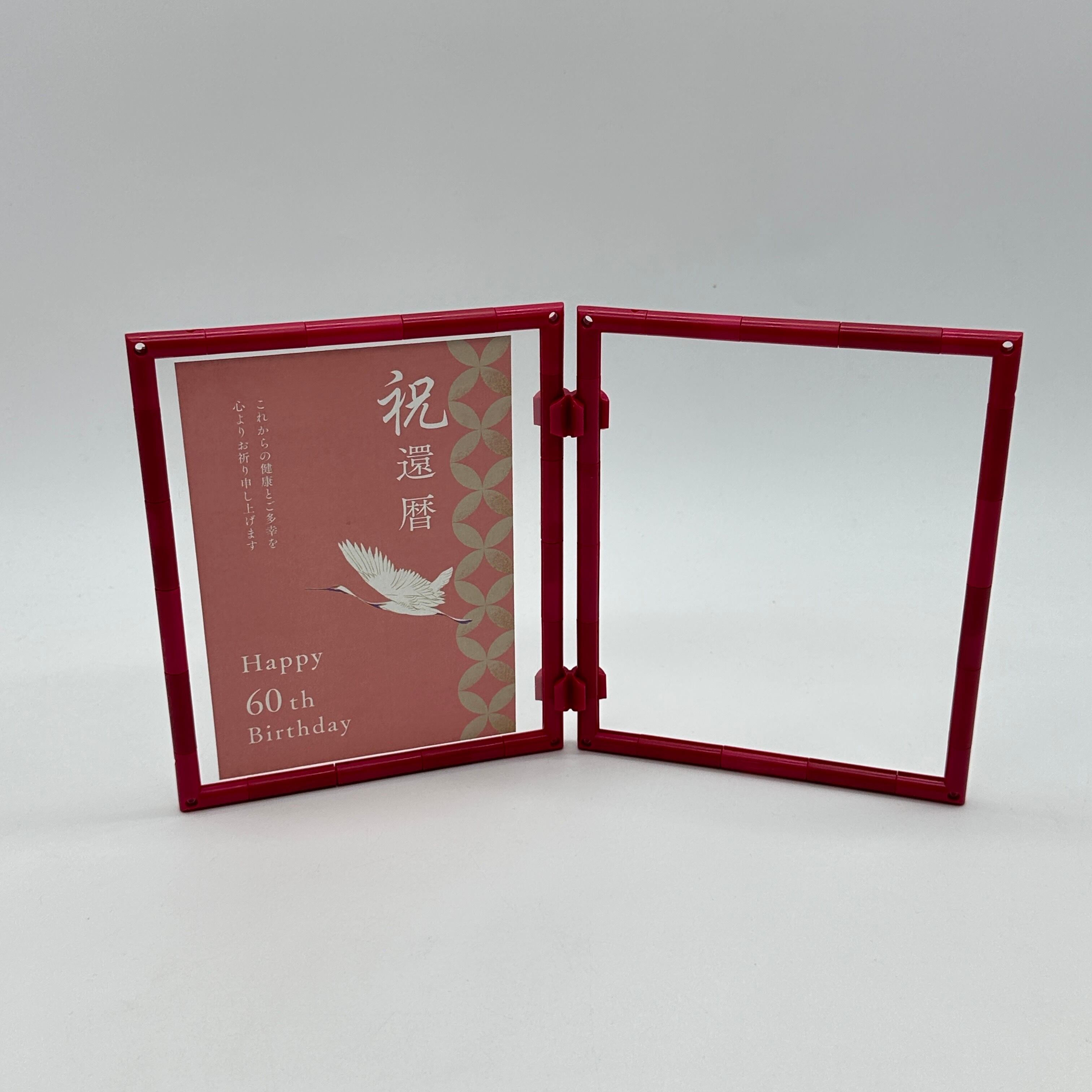 人生の大きな節目である還暦のお祝いに、縁起の良い赤色を基調としたフレームです。