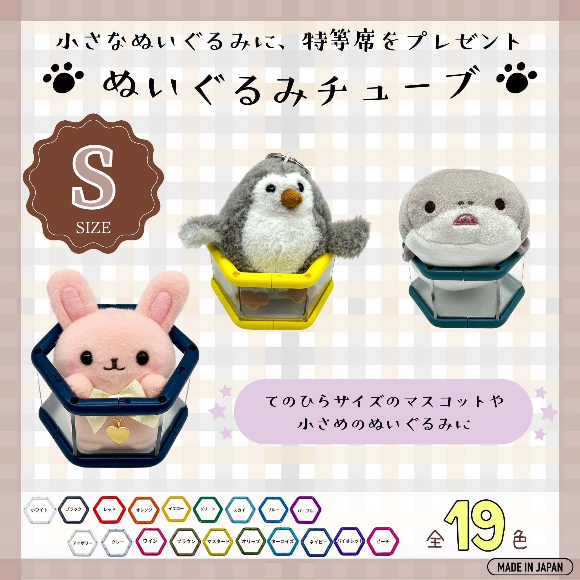 手のひらサイズのマスコットや、小さめのぬいぐるみにぴったりなサイズです。