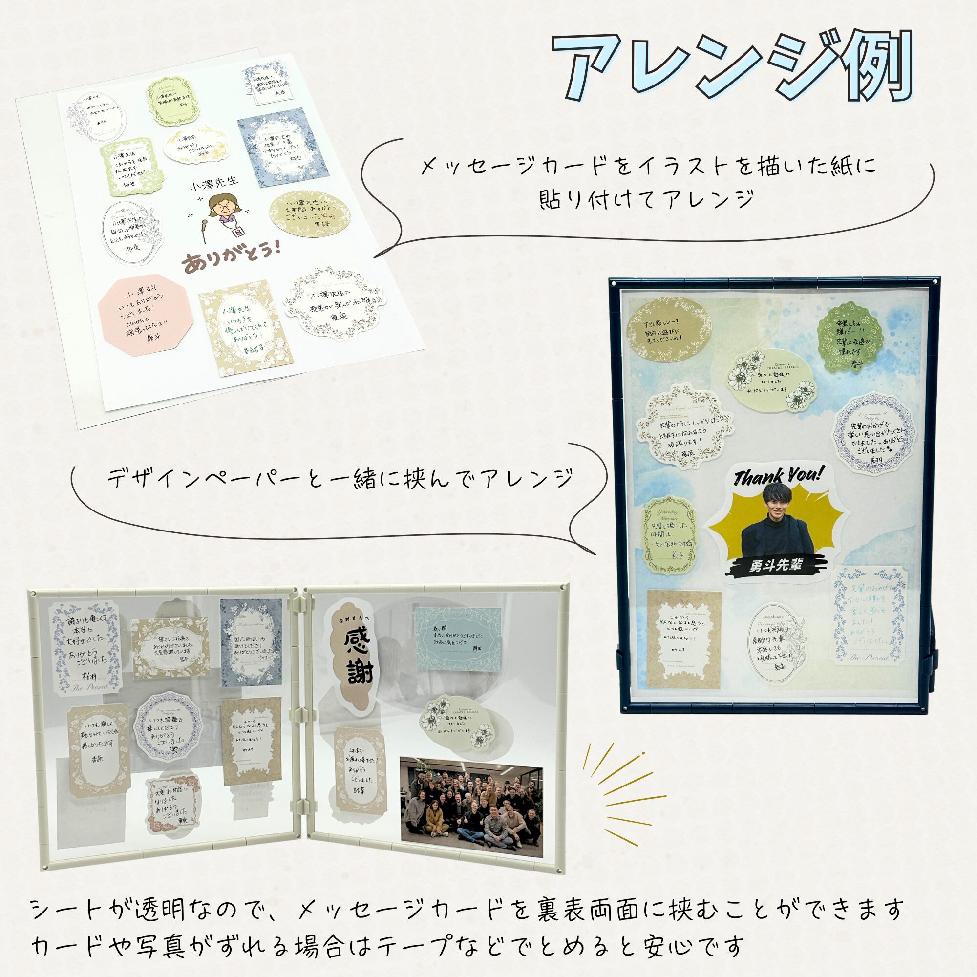 透明シートの間にカードや写真を挟むだけで、思い出を飾れる特別な1ページに。
