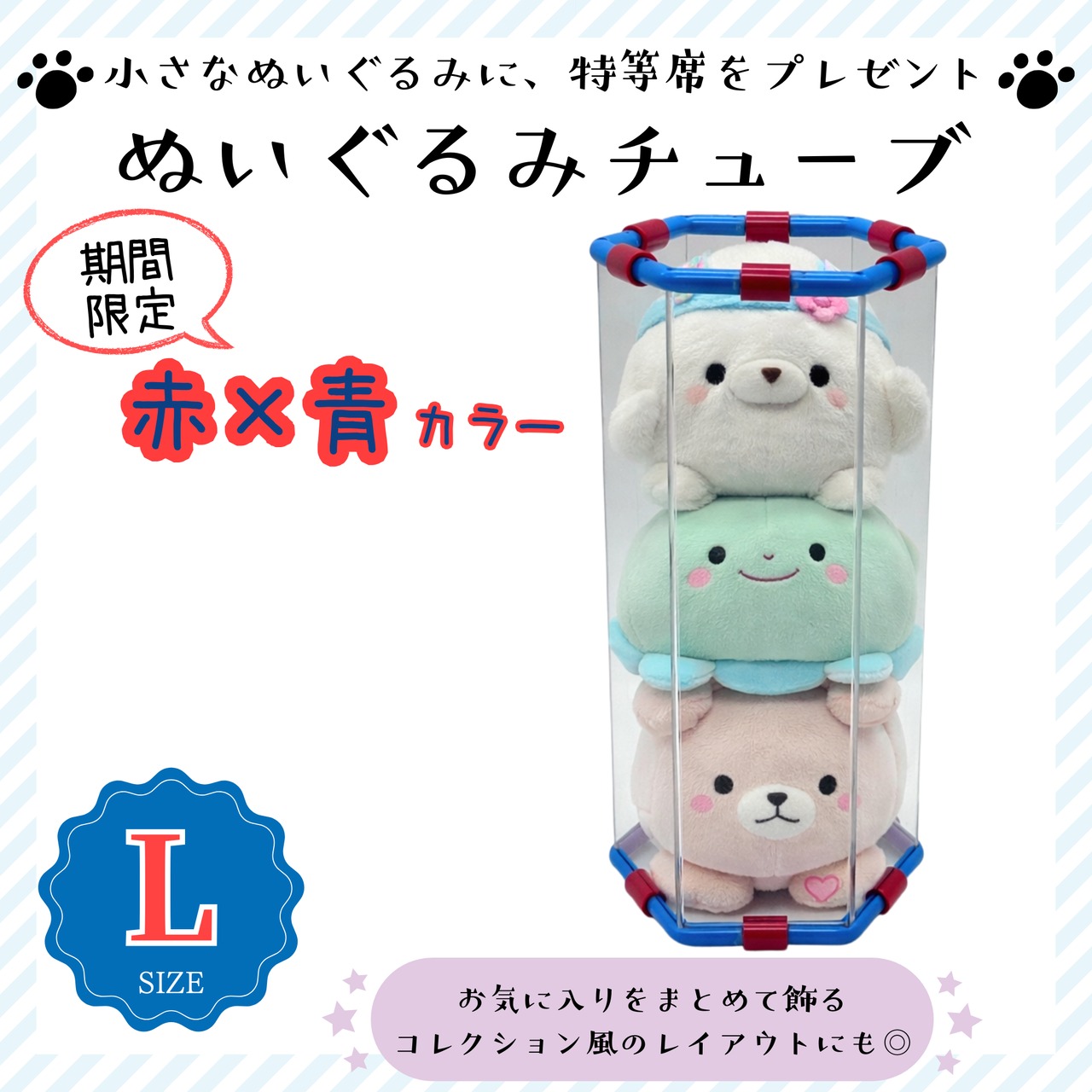 ぬいぐるみチューブスタンドに、今だけの特別カラー「赤」×「青」が仲間入りしました。