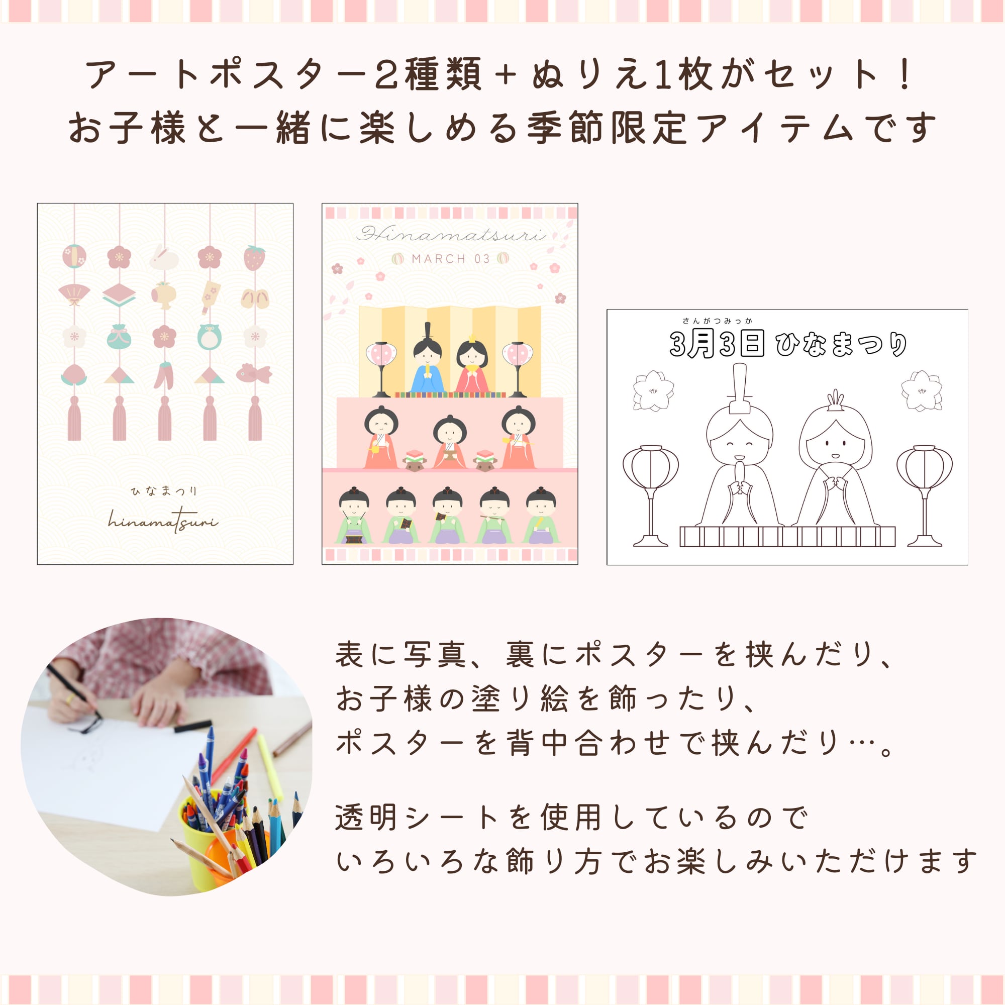 本商品には【ひなまつりアートポスター2種】と【ぬりえ】がセットになっています。