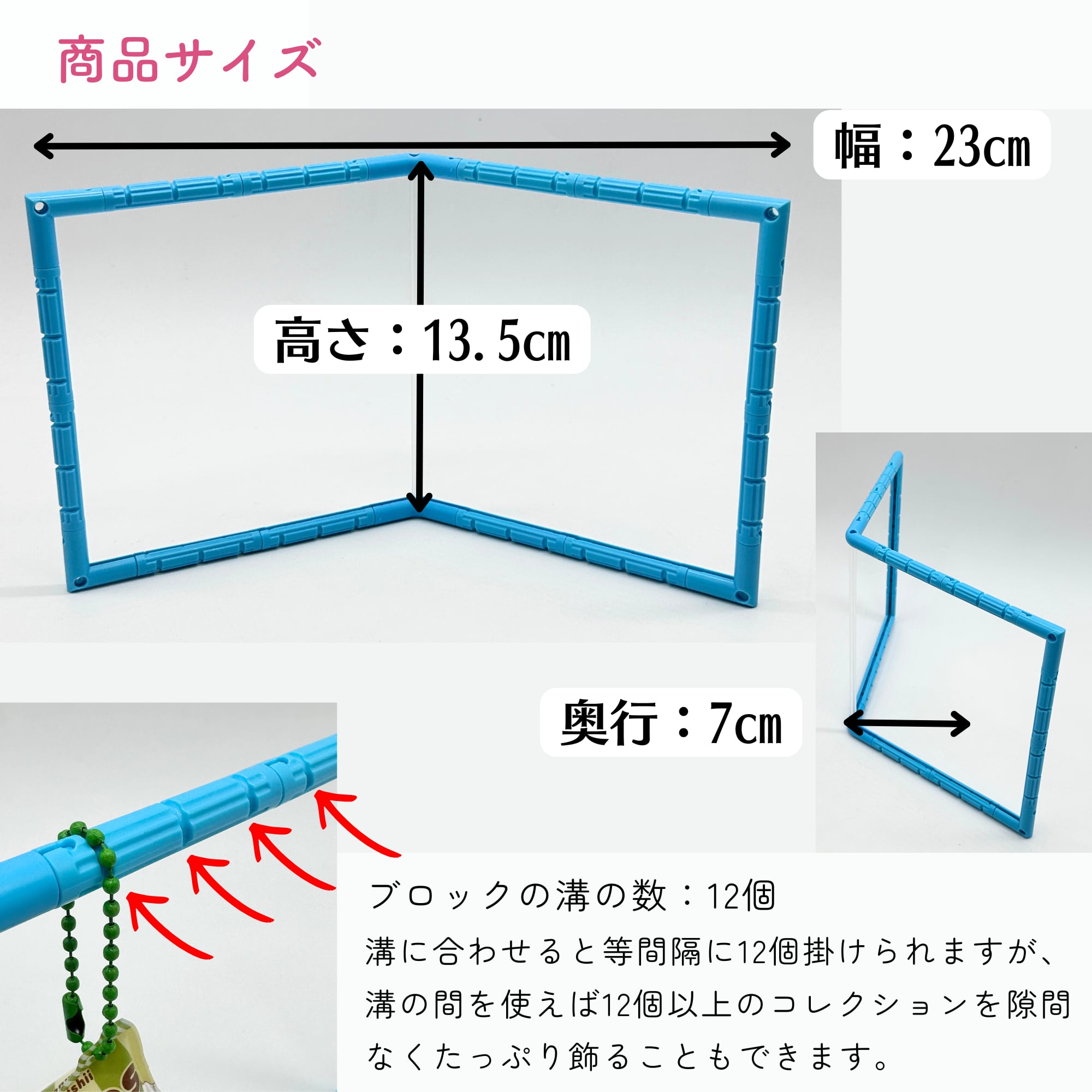 また、チェーンがブロックの「溝」にちょうど引っ掛かるので、飾っているうちに左右に寄ってしまうストレスがありません。