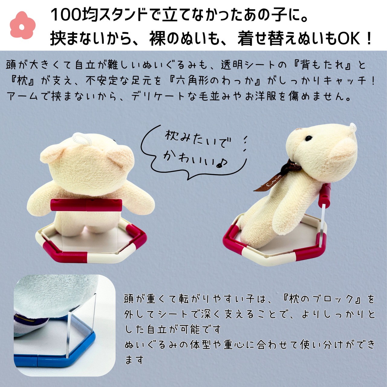 特徴: 背面クリアシート、シートをカバーする枕用ブロック、足元安定六角形フレーム