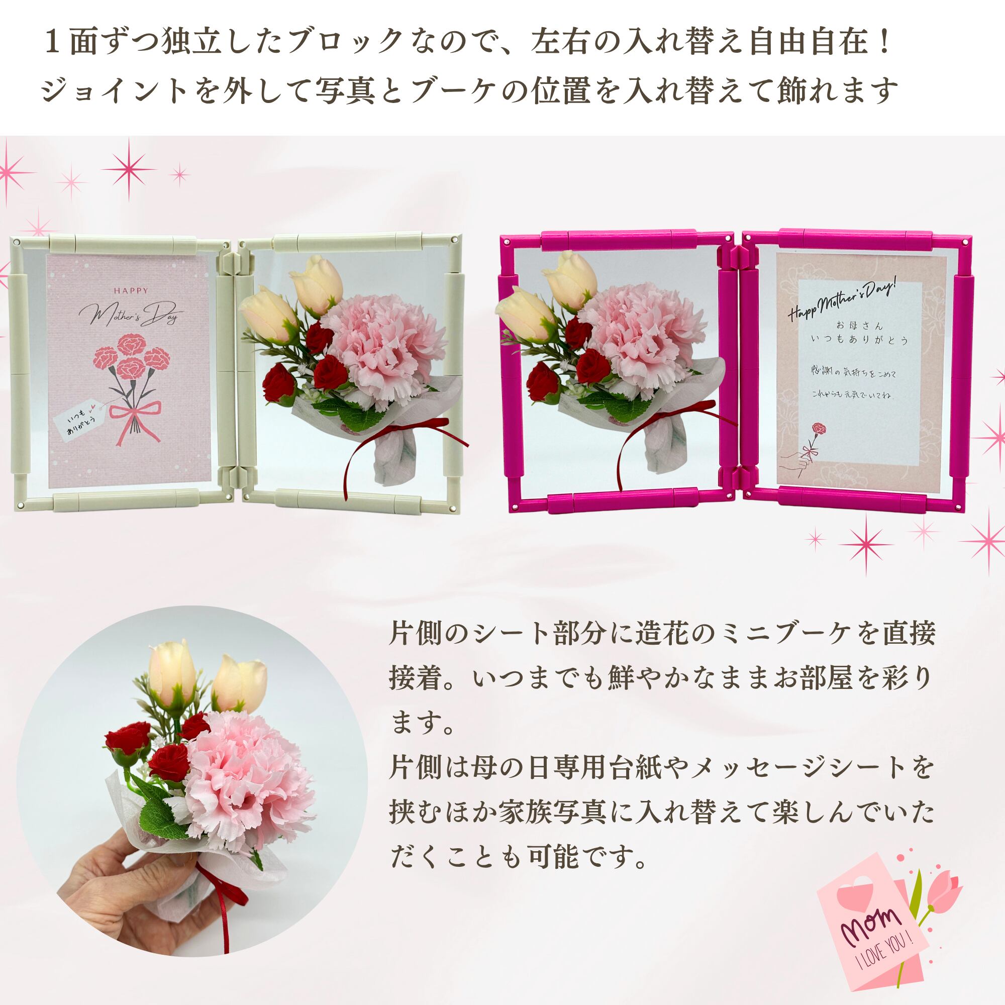 母の日 デコフレーム 2面 造花付き
