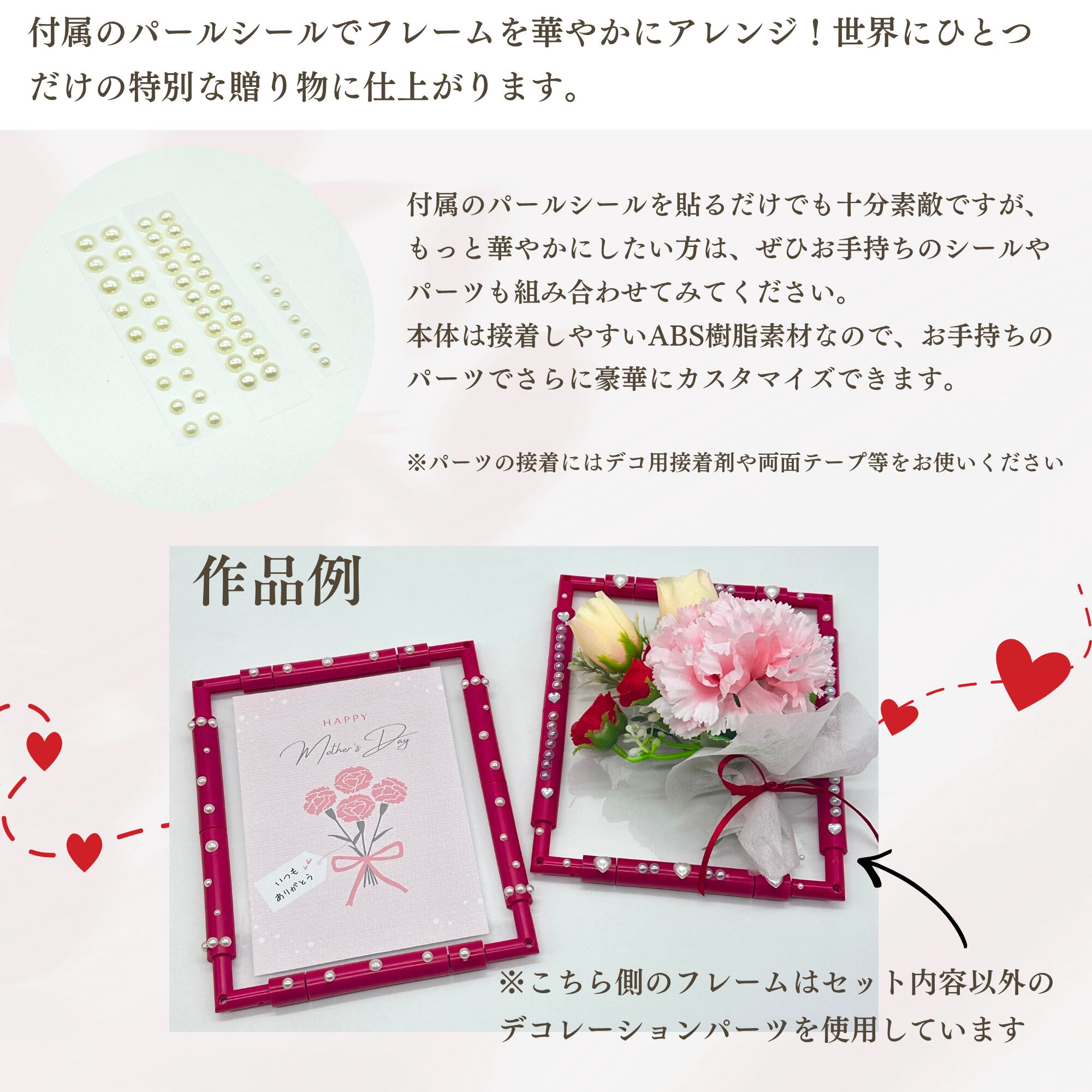 ※商品画像のアレンジ例には、付属のパールシールのほか、市販のシール(別売)を使用しているものがございます。