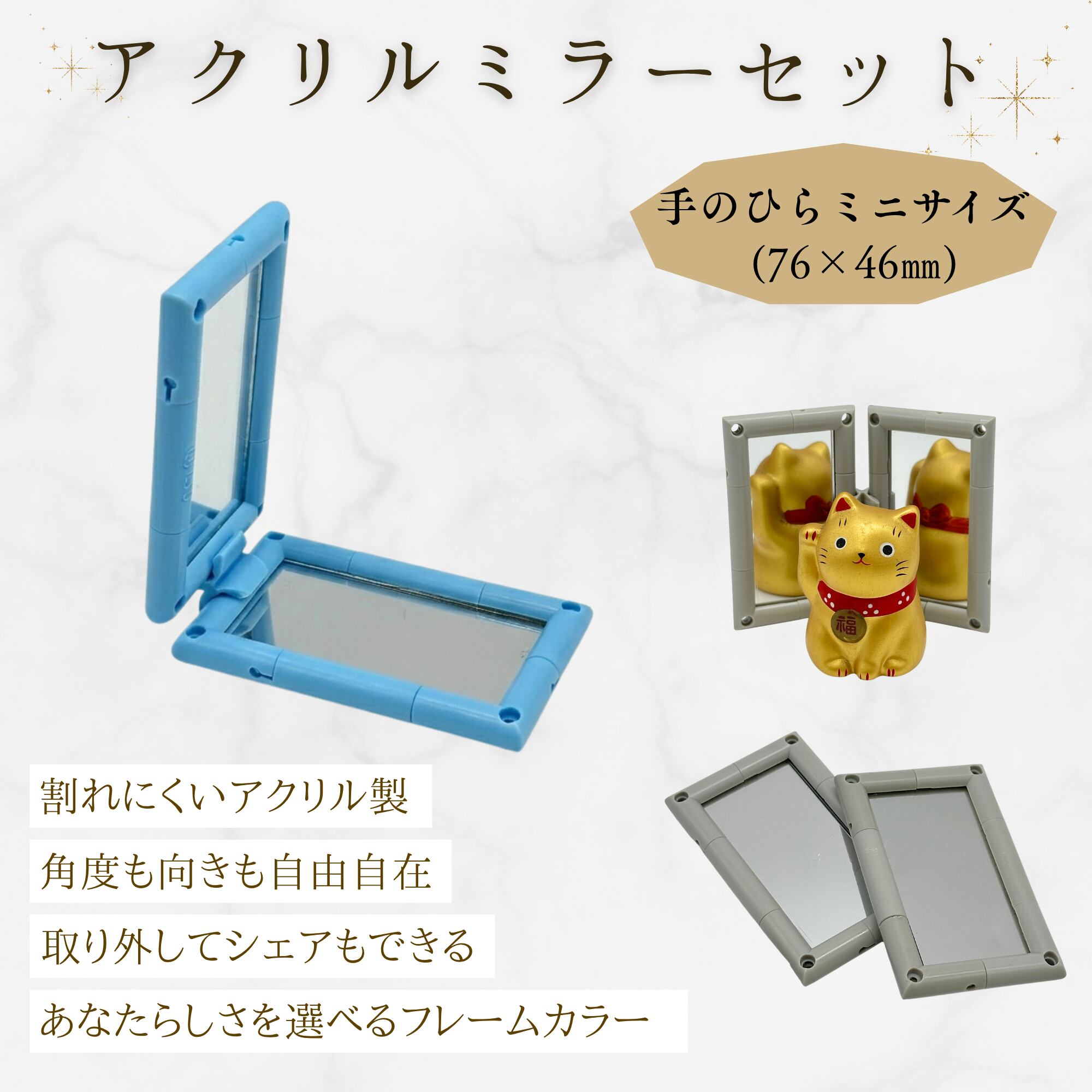 2面セットのミラーは、ブロックを外せば1面ずつの独立したミラーとして使用可能。ポーチに入れて持ち運んだり、友人とシェアしたり、シーンに合わせて形を変えられます。